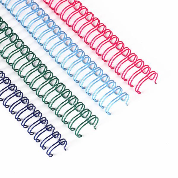 Colorful double loop wire are getting more popular nowadays, these binding materials are made by our factory. We can make red, blue, green, pink, yellow, purple and other colors. The colorful double loop wire is 34 loops, we also can make 23 loops, 24 loops, 16 loops and so on. All the goods will be packed in individual A4 packing boxes if you don’t have any packing requirements. Our binding wires can be packed in spools too, east to move and use if you need to cut by yourself. Ask us any questions now!